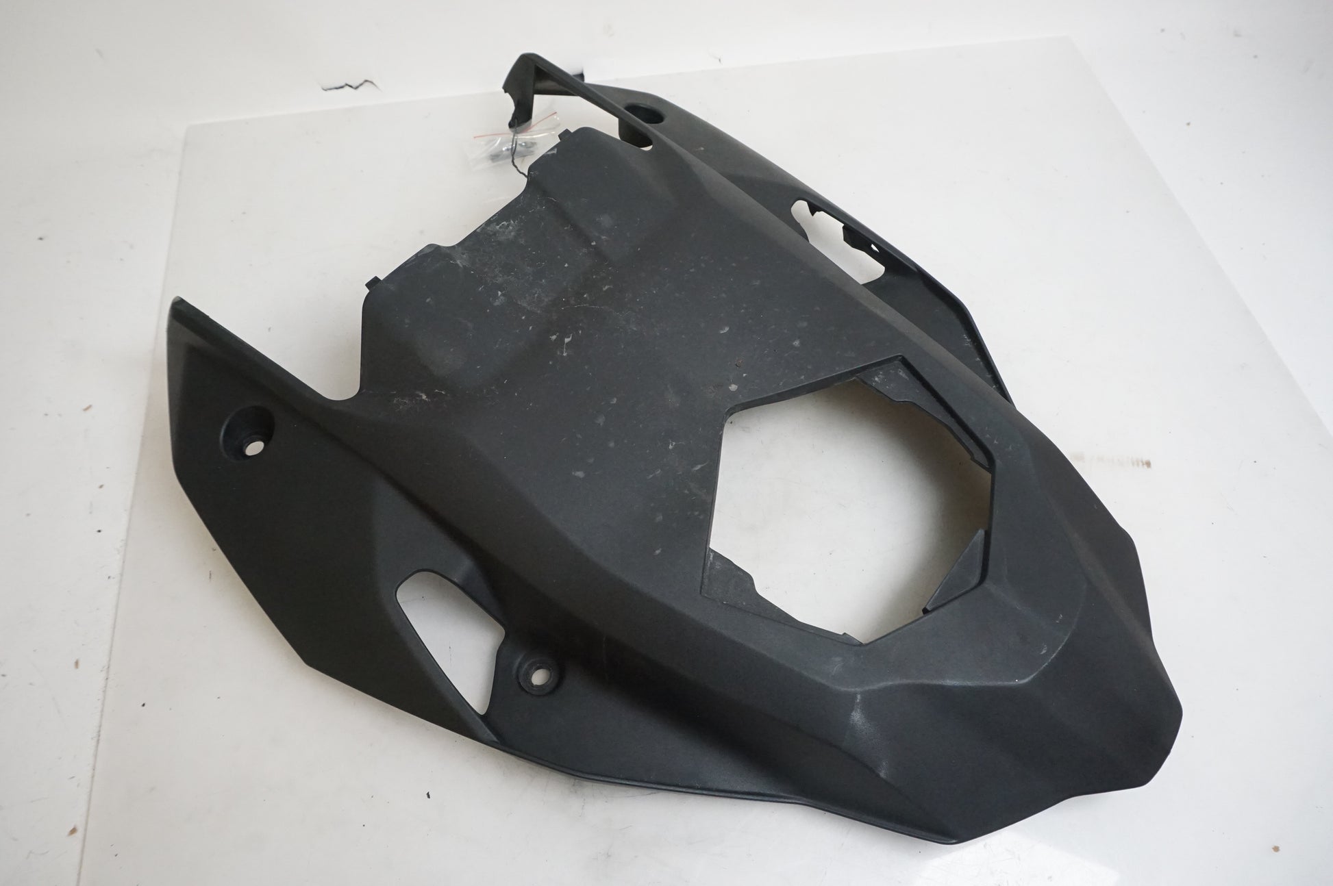 Sous la queue arrière. Tout au fond de la moto. Une pièce en plastique cassée est incluse dans le sac, voir l'image.