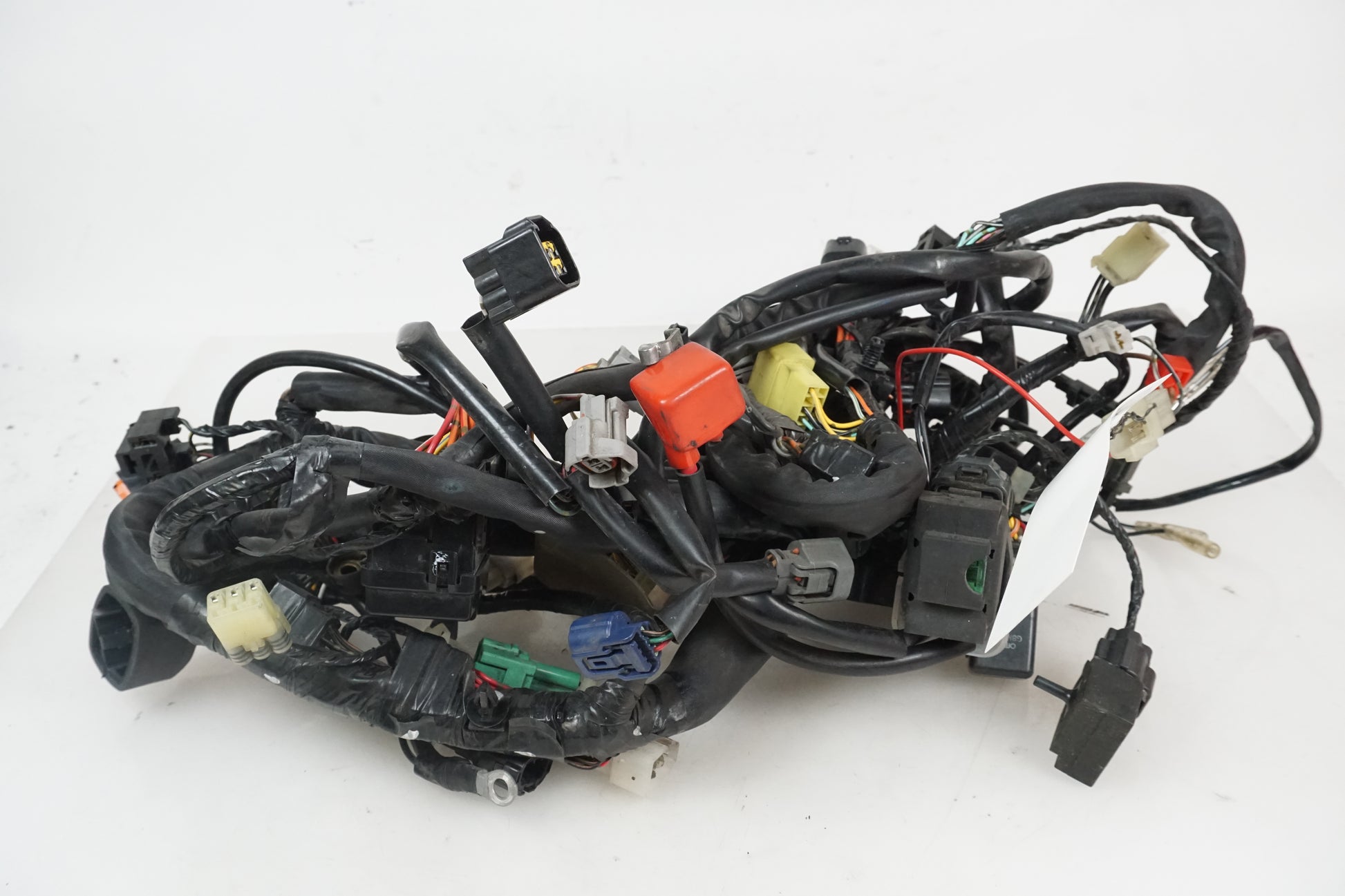 Tapis de câble complet en bon état provenant de la Suzuki GSX-R 750 2005. Tous les connecteurs sont intacts. La seule modification est un voleur de courant derrière le connecteur du feu arrière.