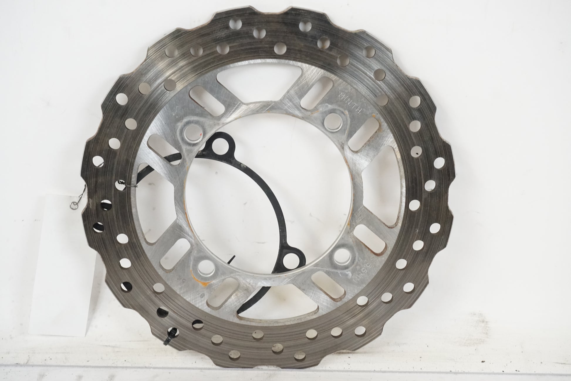 Disque de frein en bon état provenant de la Kawasaki Z 1000 2016. 6 mm d'épaisseur (l'épaisseur minimale autorisée est de 5,5 mm).