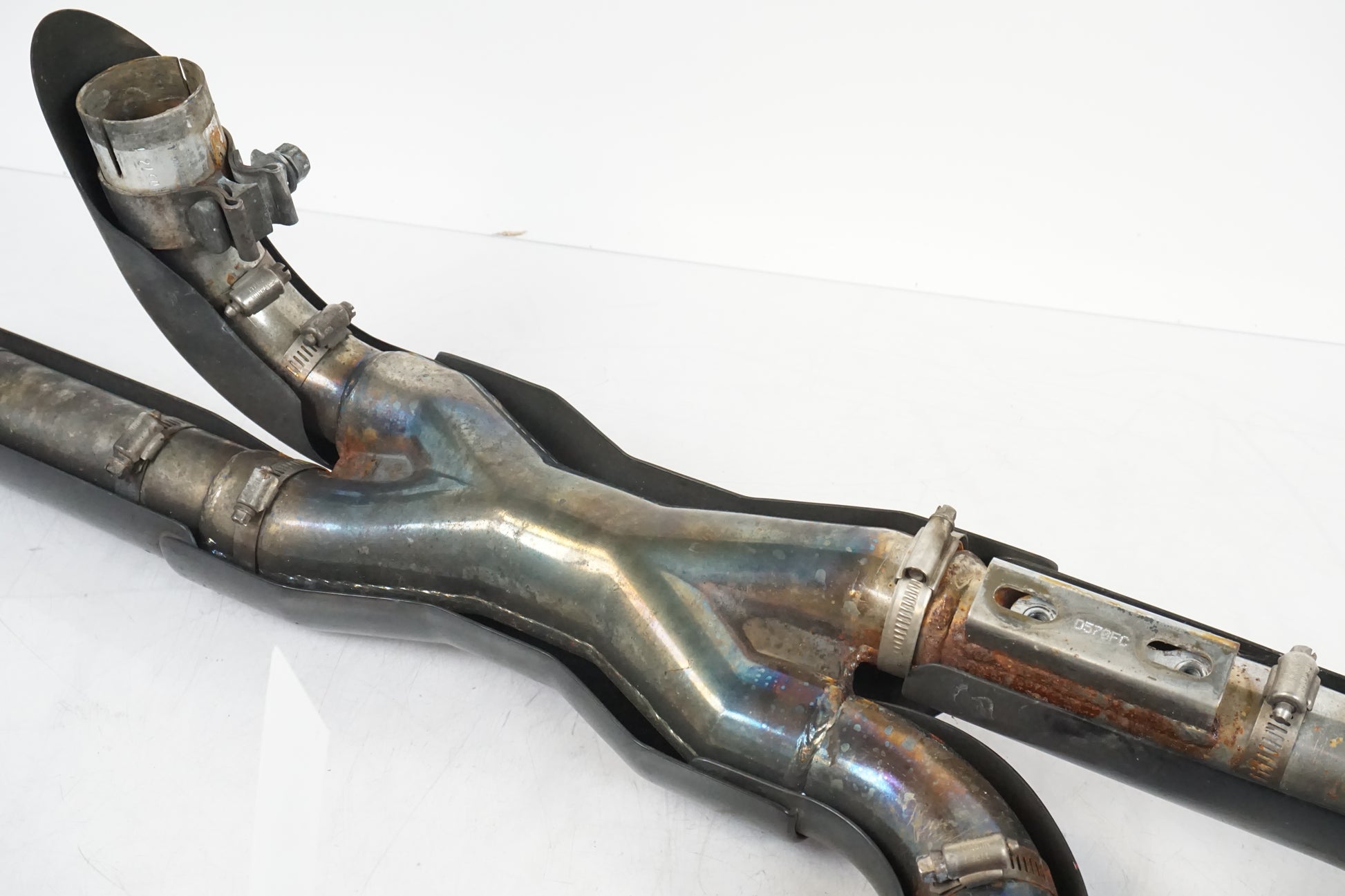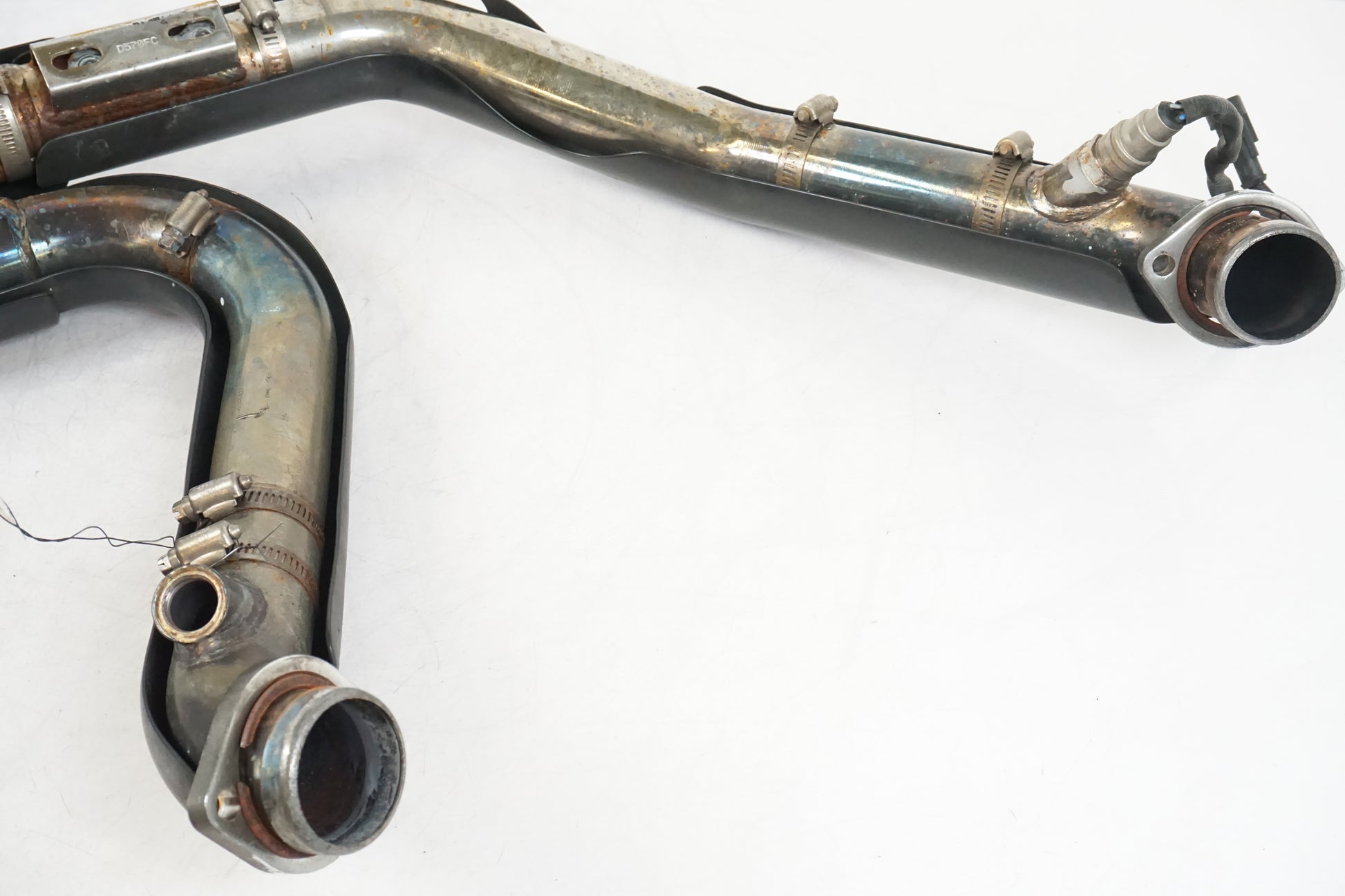 Vance & Hines collettori da una Harley-Davidson Road King Classic 2009 smontata. Il prodotto è stato montato su una motocicletta danneggiata da un incendio. Il sensore lambda posteriore è saldato. Il prodotto è in buone condizioni con danni visibili, vedere le immagini.