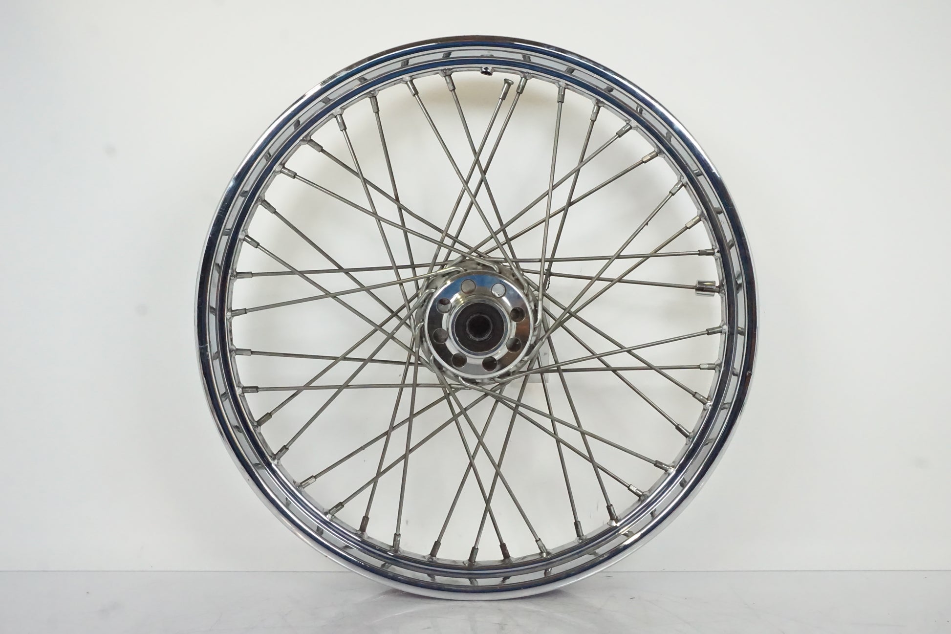 OBS!! Skada på fälgkant och trasig eker, behöver ekras om och riktas. Innerdiameter hjulaxel: 19mm.