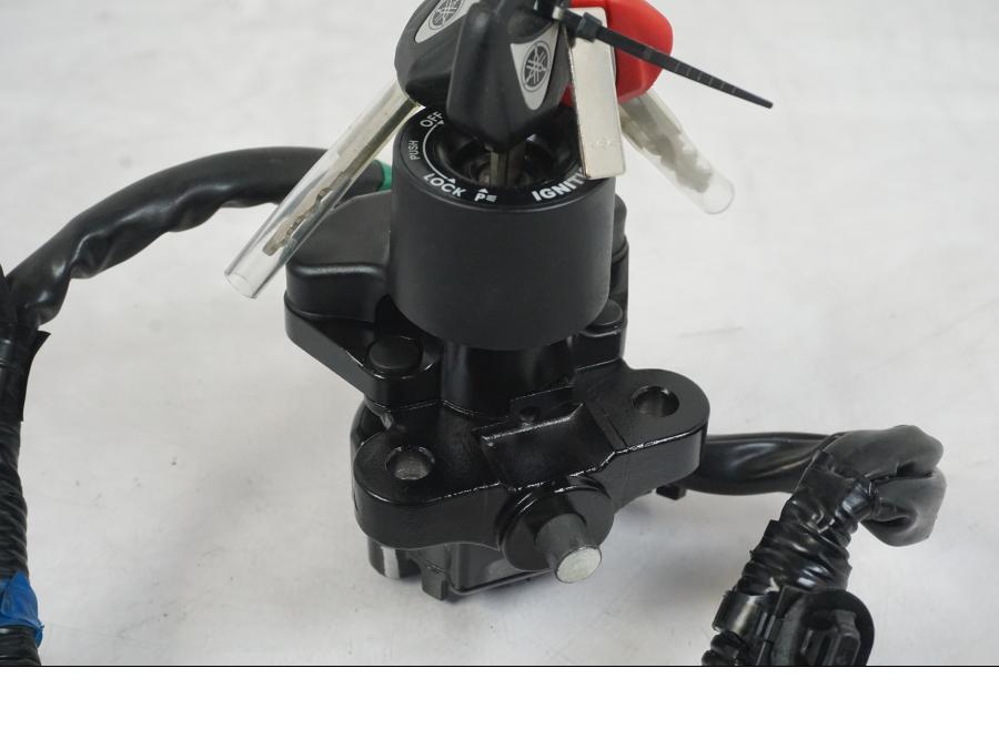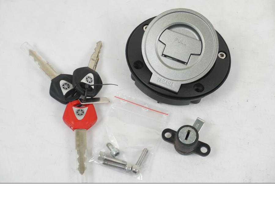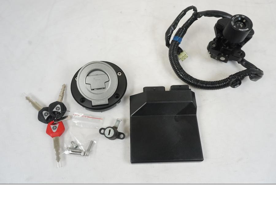 Låssats från Yamaha MT-09 2019. 2st nycklar 1st röd (huvudnyckel). 1st nyckelkod, CDI-box, tändningslås, tanklock och sadellås. Mindre skada på tändningslåset samt plasten se bild.