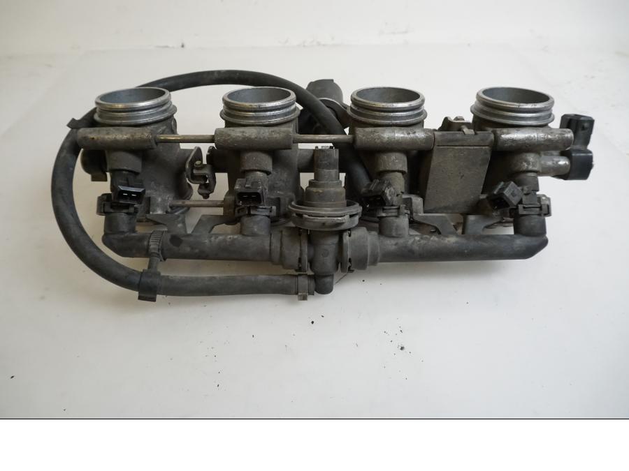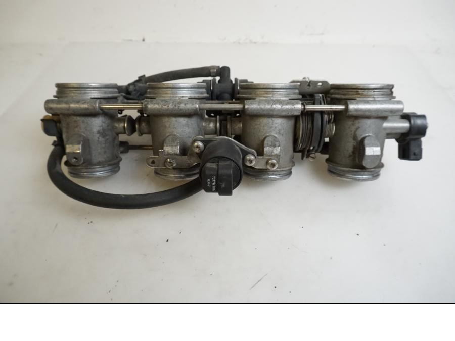 Spjällhus för BMW K 1200 S, årsmodell 2007. Komponent i normalt skick med hänsyn till fordonets ålder och körsträcka. Designat för att reglera luftmängden som går in i motorn, vilket bidrar till optimal motoreffektivitet och prestanda. Installations- och underhållsriktlinjer bör följas.