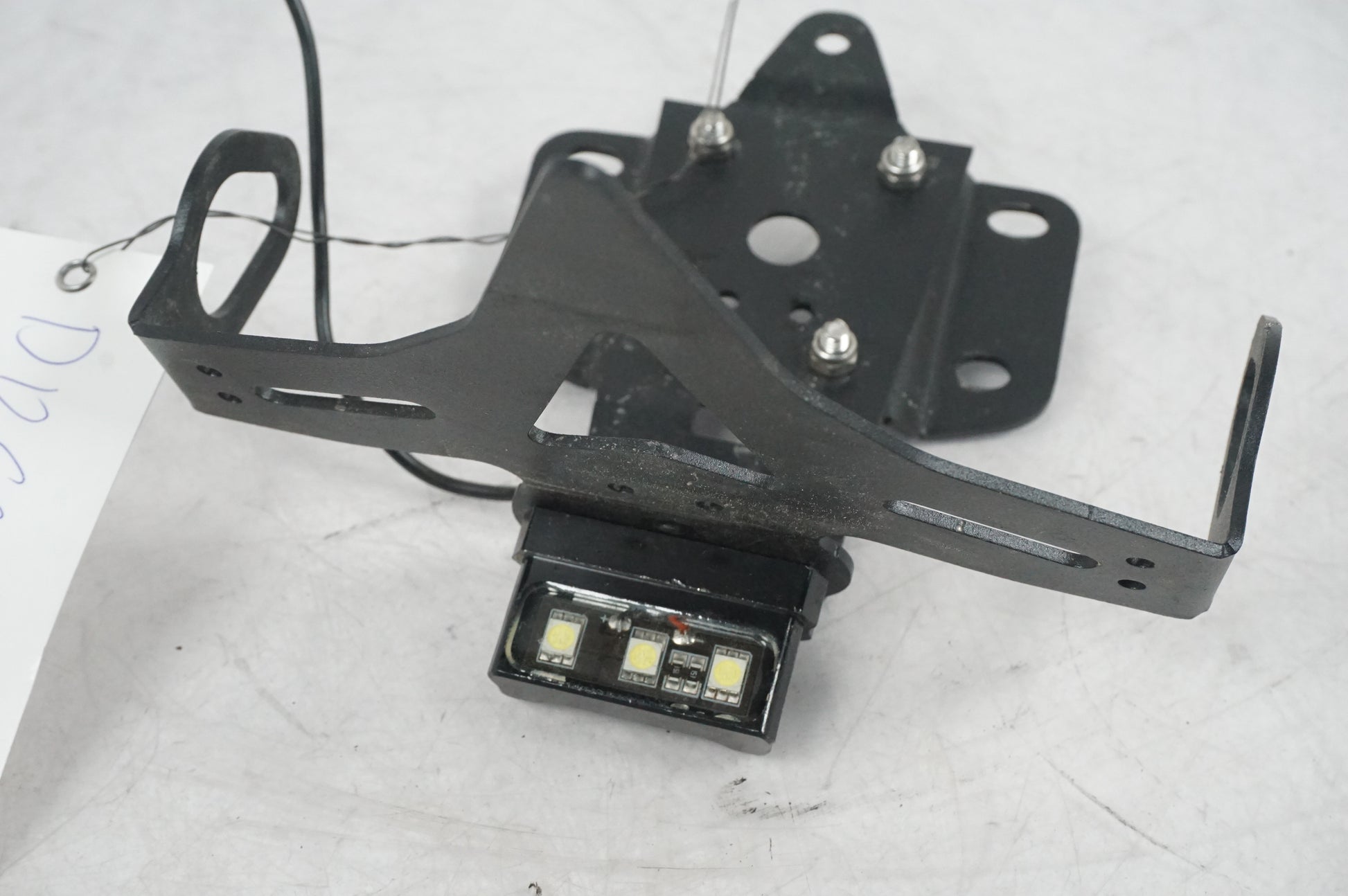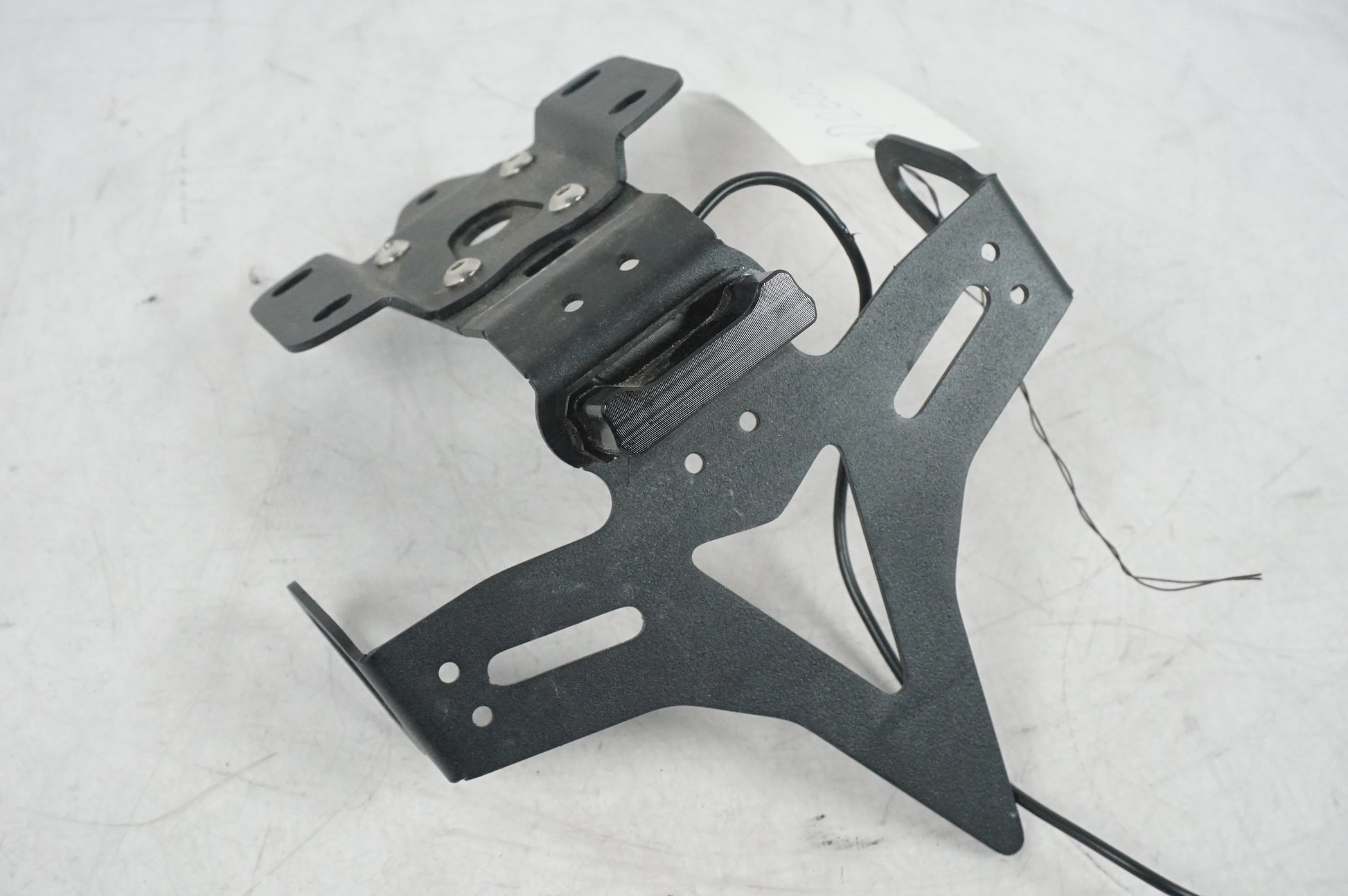 Skylhållare från Yamaha MT-07 2022. Eftermarknadsdel. Innehåller även skyltbelysning med avklippta kablar.